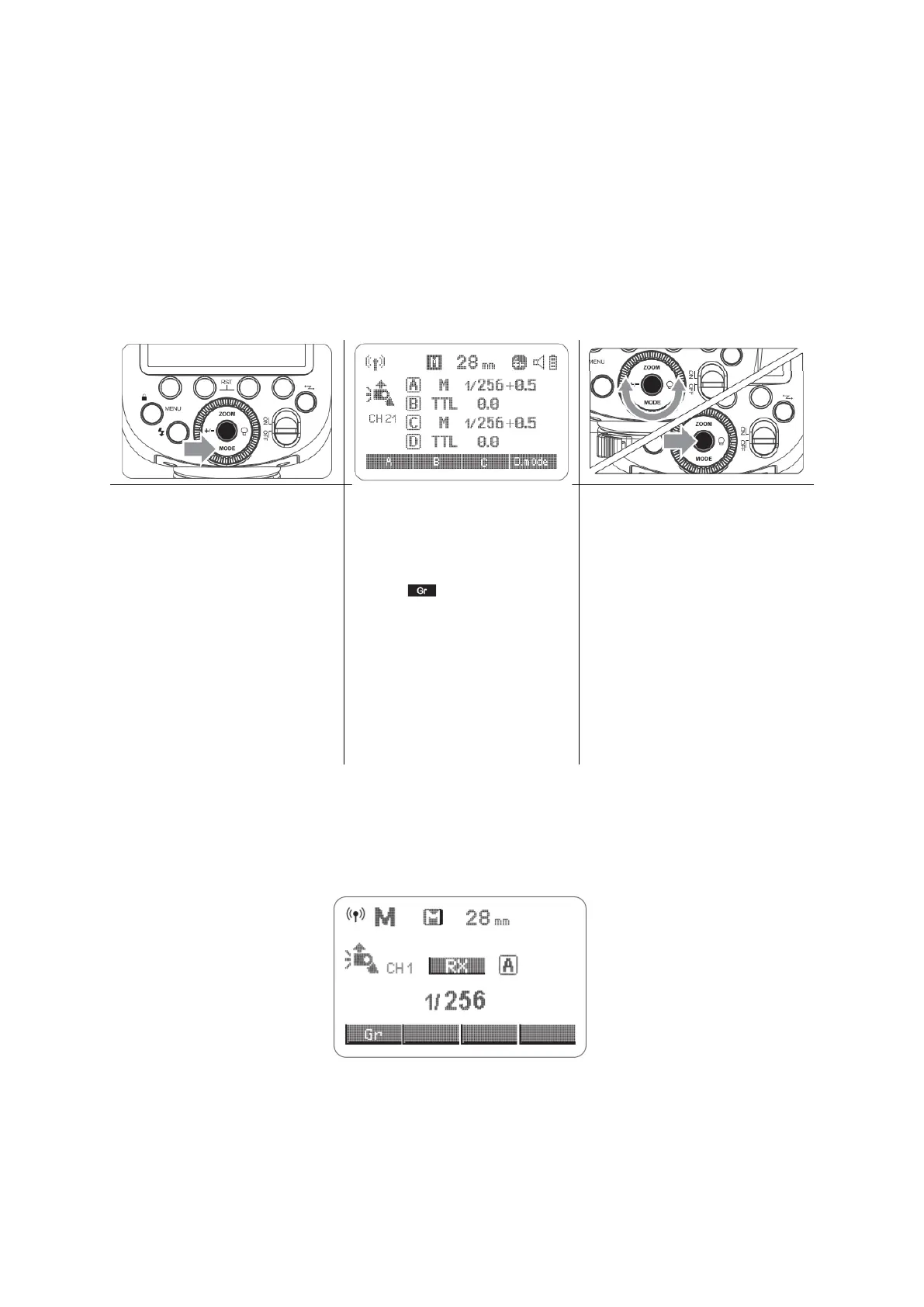 Minden egyes vevőegység (gyújtás) csoporthoz más-más vaku kimeneti beállítással