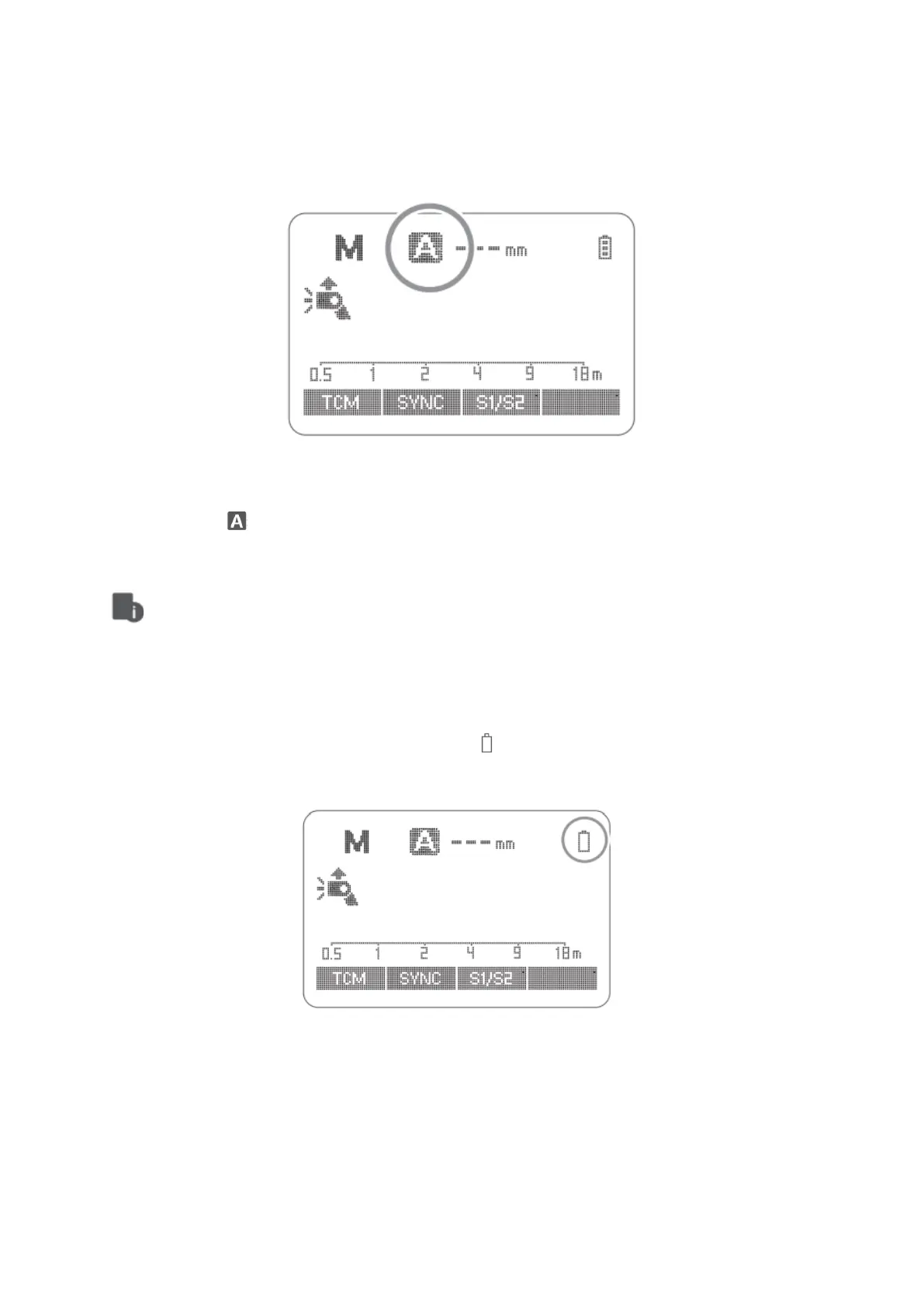 • Wenn < > angezeigt wird, wird die Blitzreichweite automatisch eingestellt.