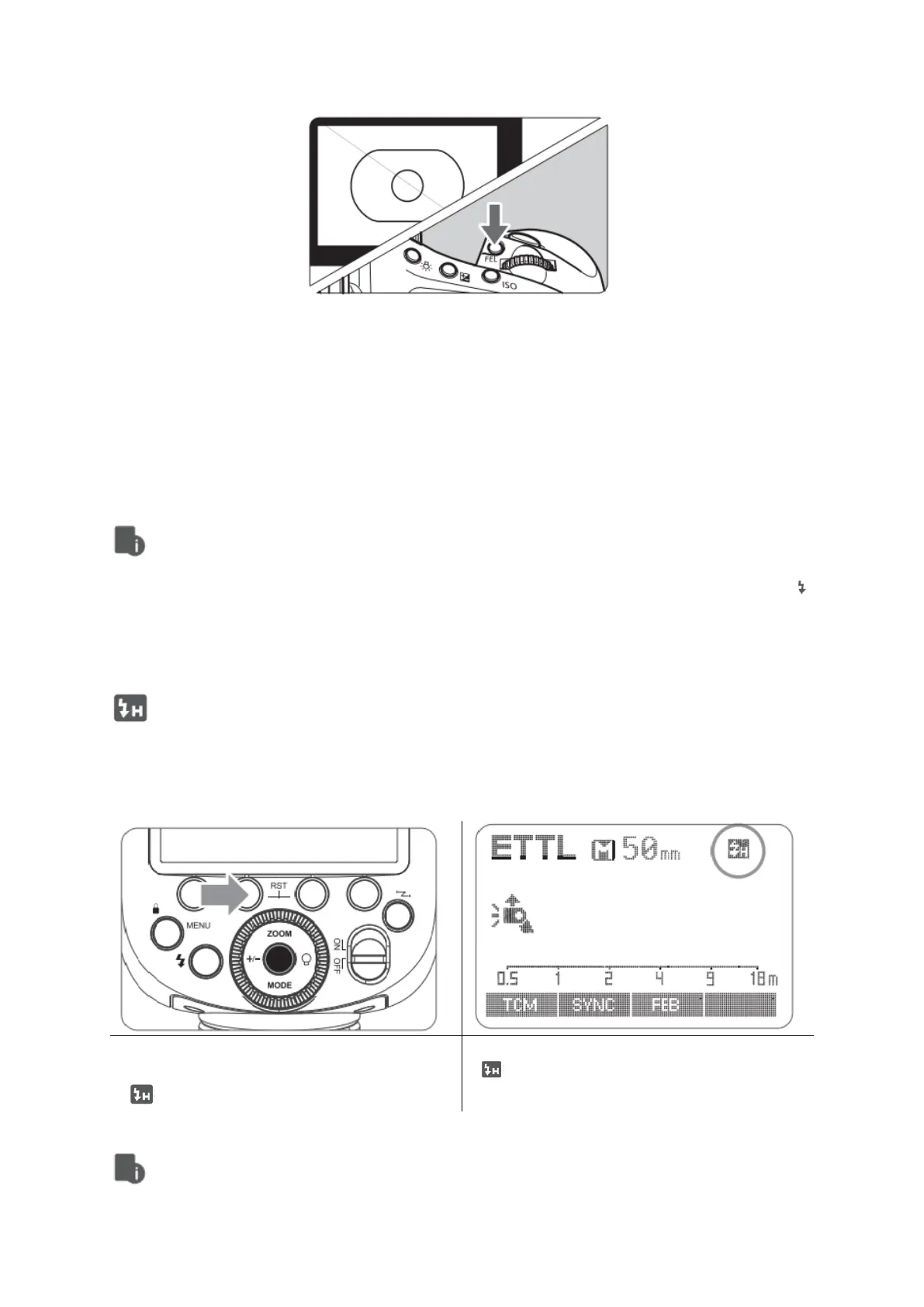 • Při každém stisknutí tlačítka <FEL> se odpálí předzáblesk a uzamkne se nové
