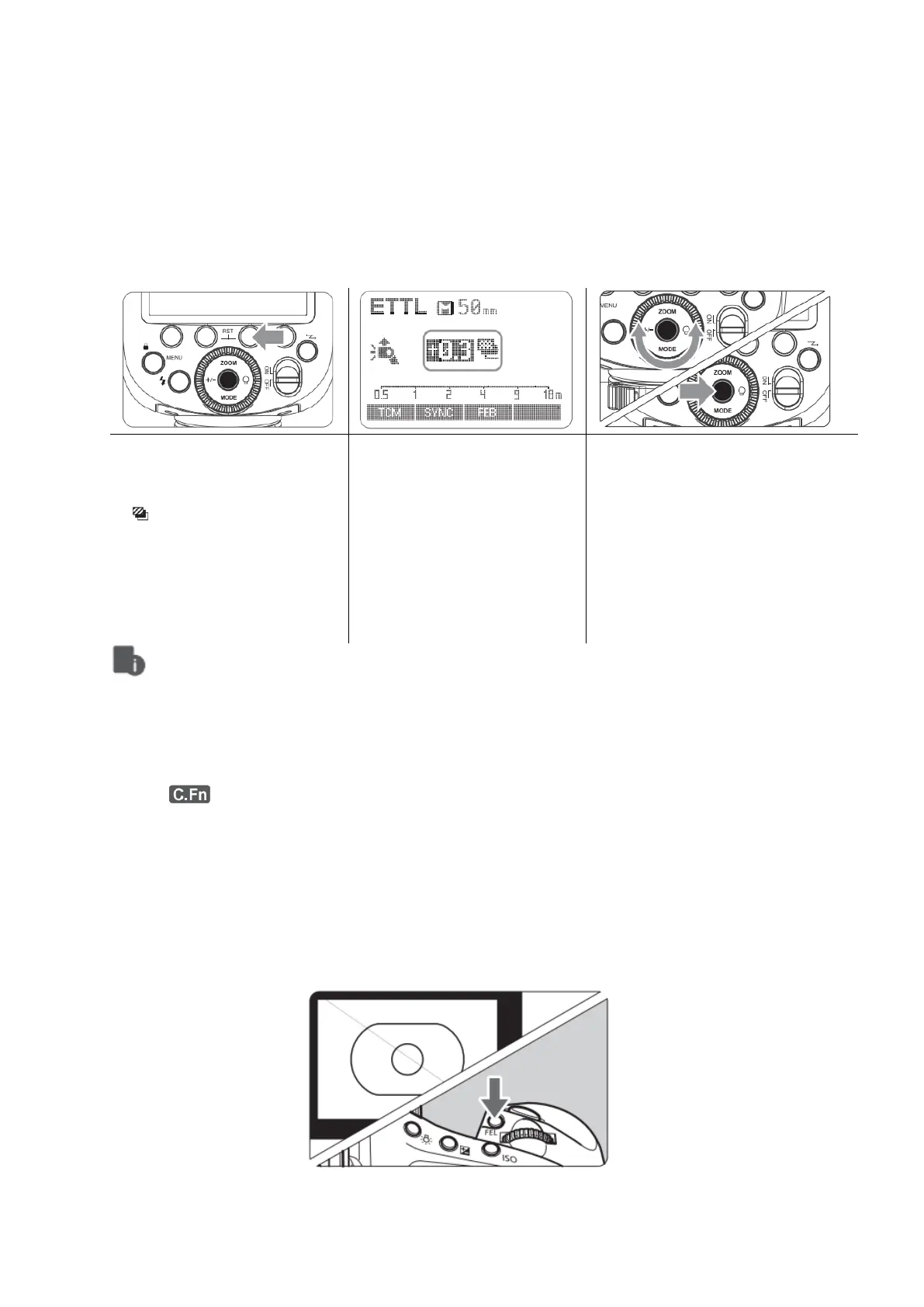 Keď sa na LCD paneli zobrazí <ETTL>, stlačte tlačidlo <FEL> na fotoaparáte. Ak fotoaparát