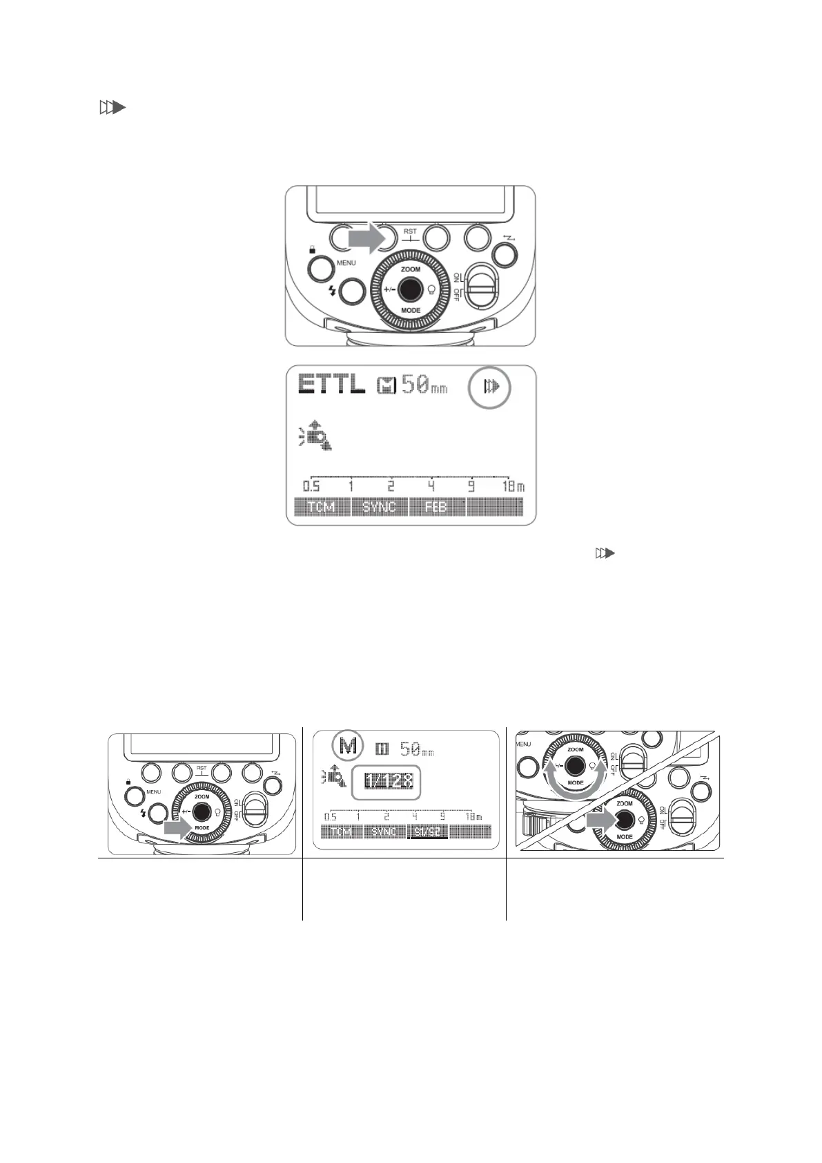 Stlačte funkčné tlačidlo 2 <SYNC> tak, aby sa na LCD paneli zobrazilo < >.