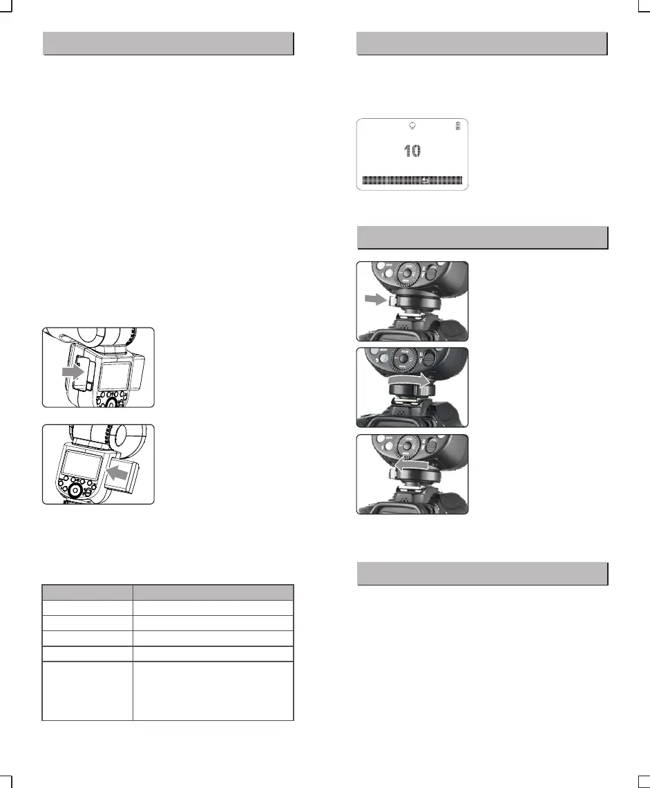 Use ON/OFF Power Switch to power the flash unit on or off. Turn
