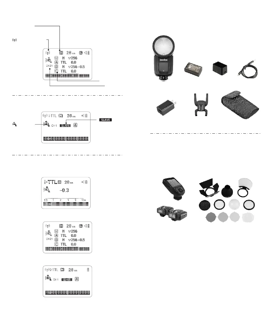 1. Flash Unit 2. Lithium Battery 3. USB Battery Charger