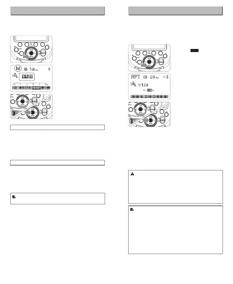 ● A flash output of 1/1 and 1/2 cannot be set for stroboscopic