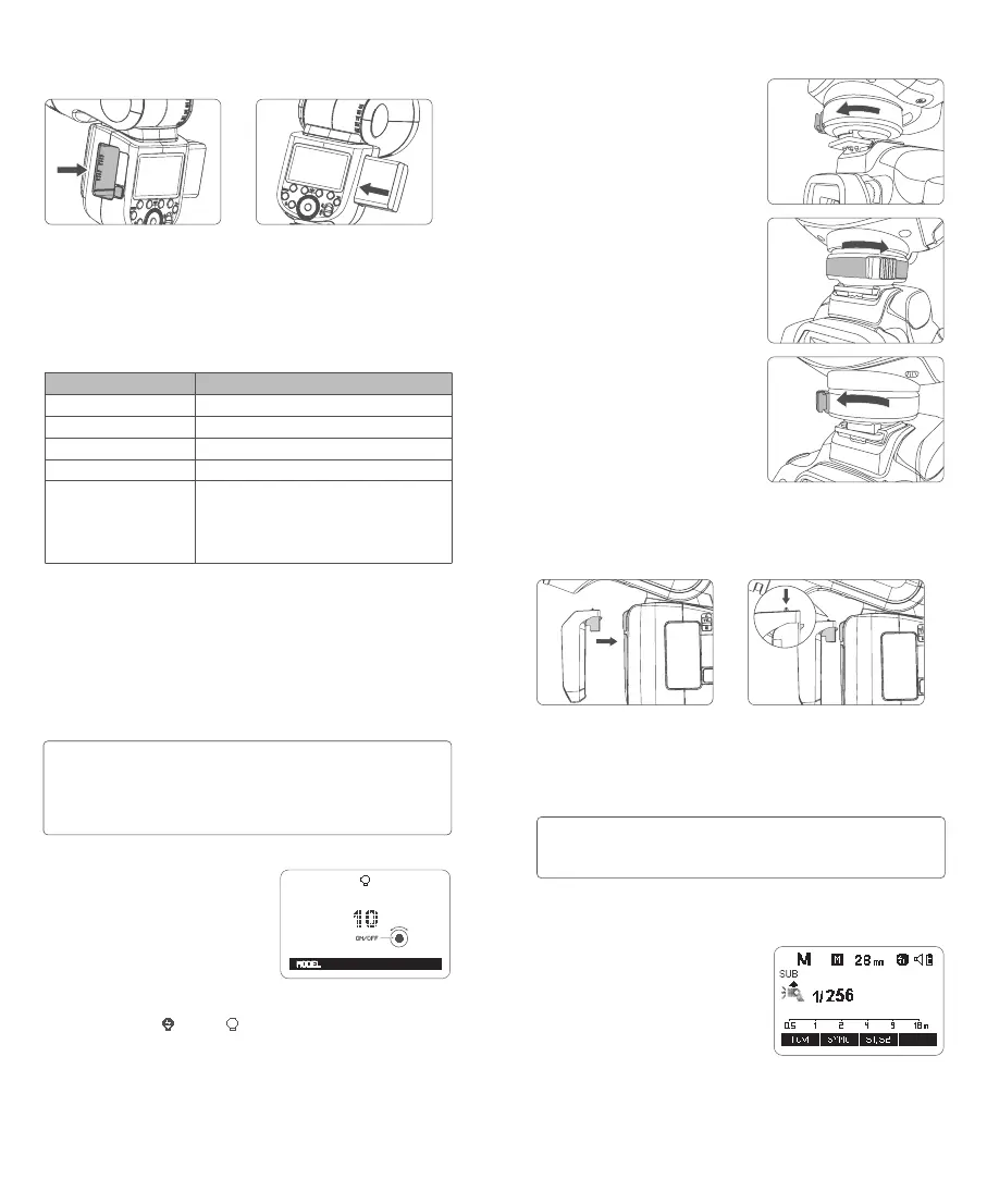 Use ON/OFF power switch to power the flash unit on or off. Turn off if it will
