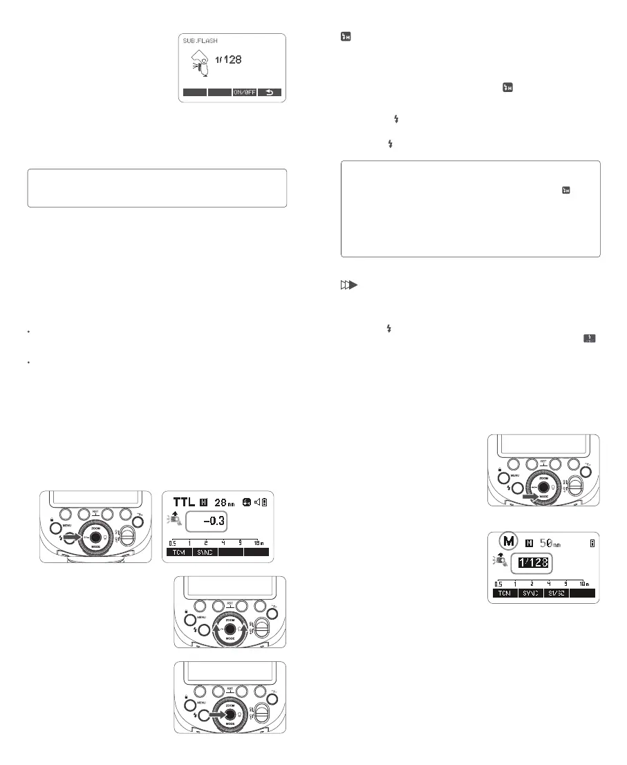 In M manual flash mode, press <S1/S2> button so that this flash can function