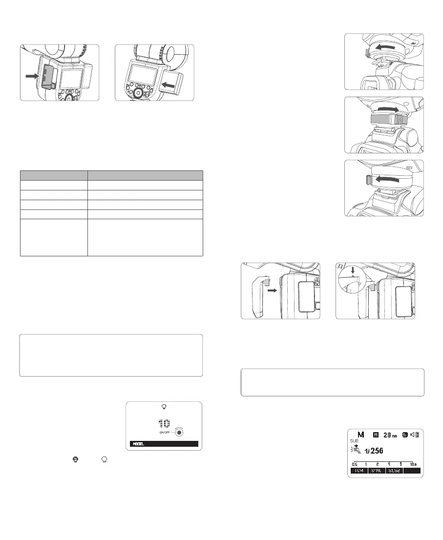 Use ON/OFF power switch to power the flash unit on or off. Turn off if it will