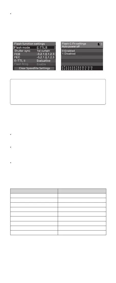 2. If any flash custom functions and flash settings other than flash exposure