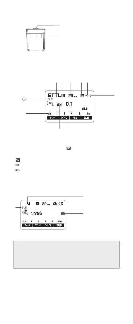 4. 机顶闪光灯 V1Pro C 需插入辅助闪光灯 SU-1, 界面才会显示 <SUB> 字符。
