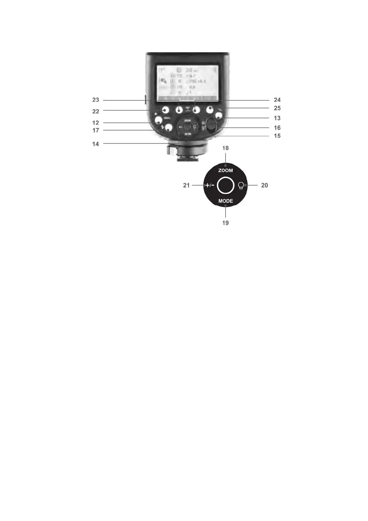 12. <MENU> Flash menü gomb/záró gomb