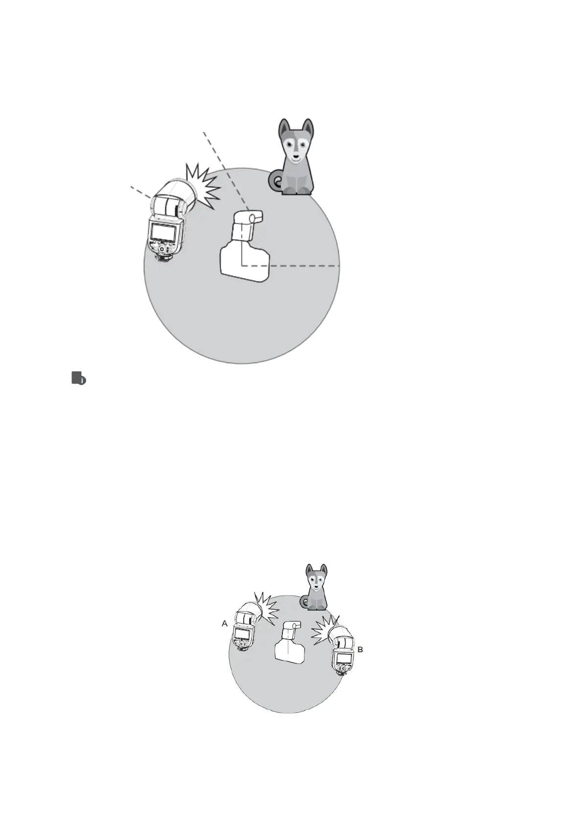 Umístění a provozní rozsah (příklad fotografování s bezdrátovým bleskem)