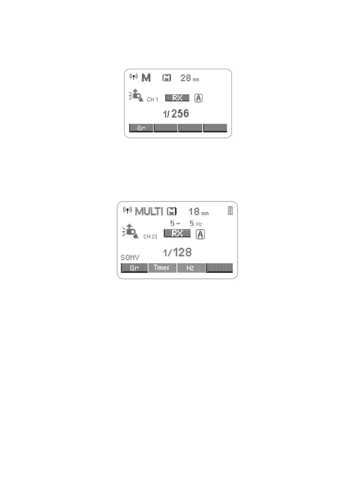 Manuálny alebo stroboskopický blesk možno nastaviť priamo na prijímacej jednotke.