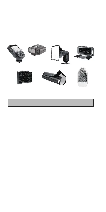 1. Flash unit 2. Mini stand 3. Protection case 4. Diffuser