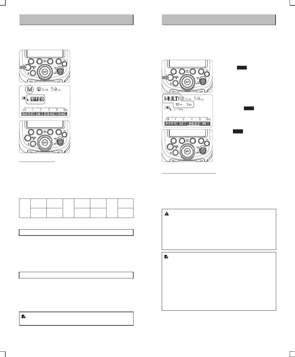 ● A flash output of 1/1 and 1/2 cannot be set for stroboscopic