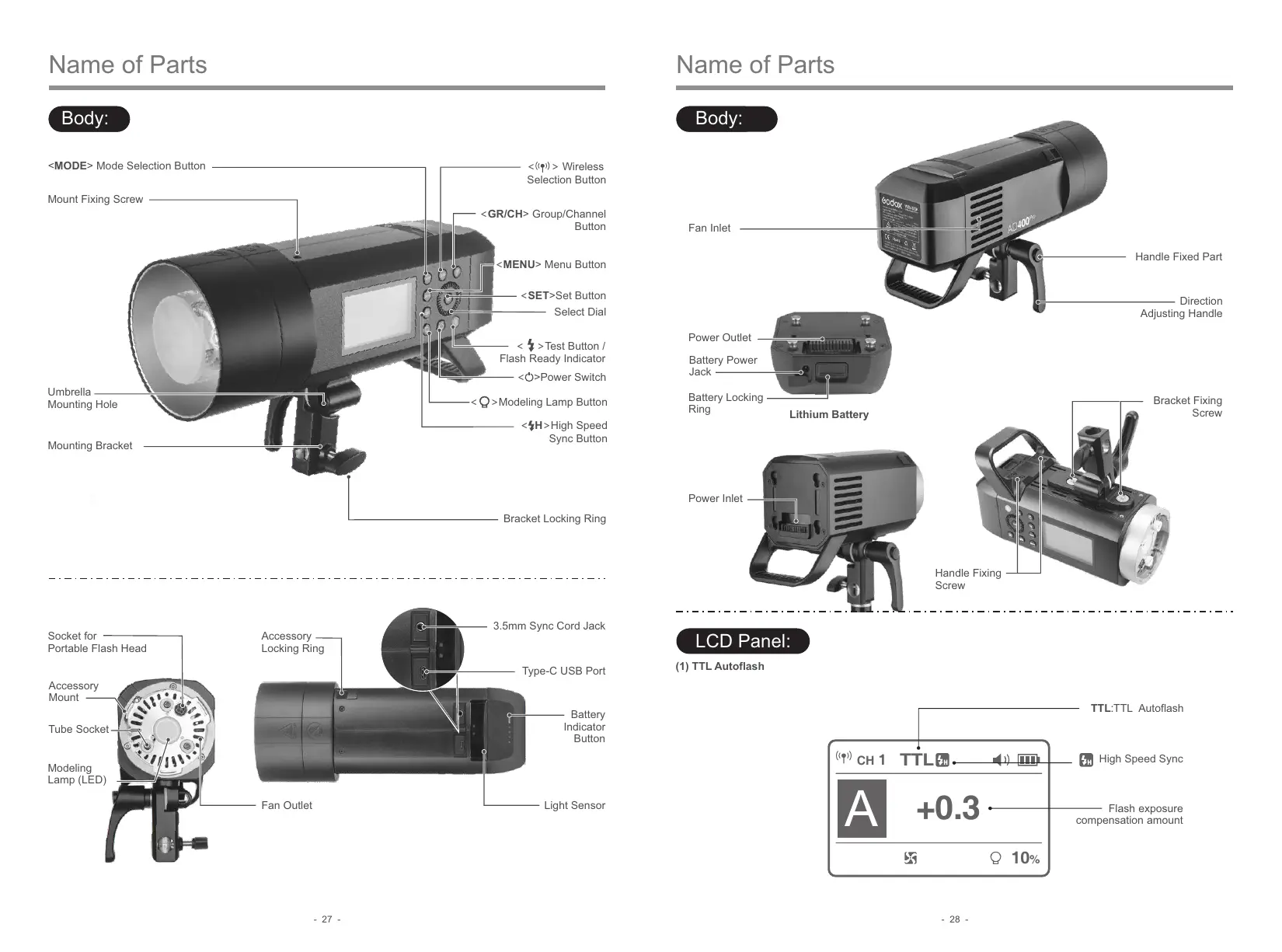 Godox WITSTRO AD400Pro - Product Description and Setup; Component Identification