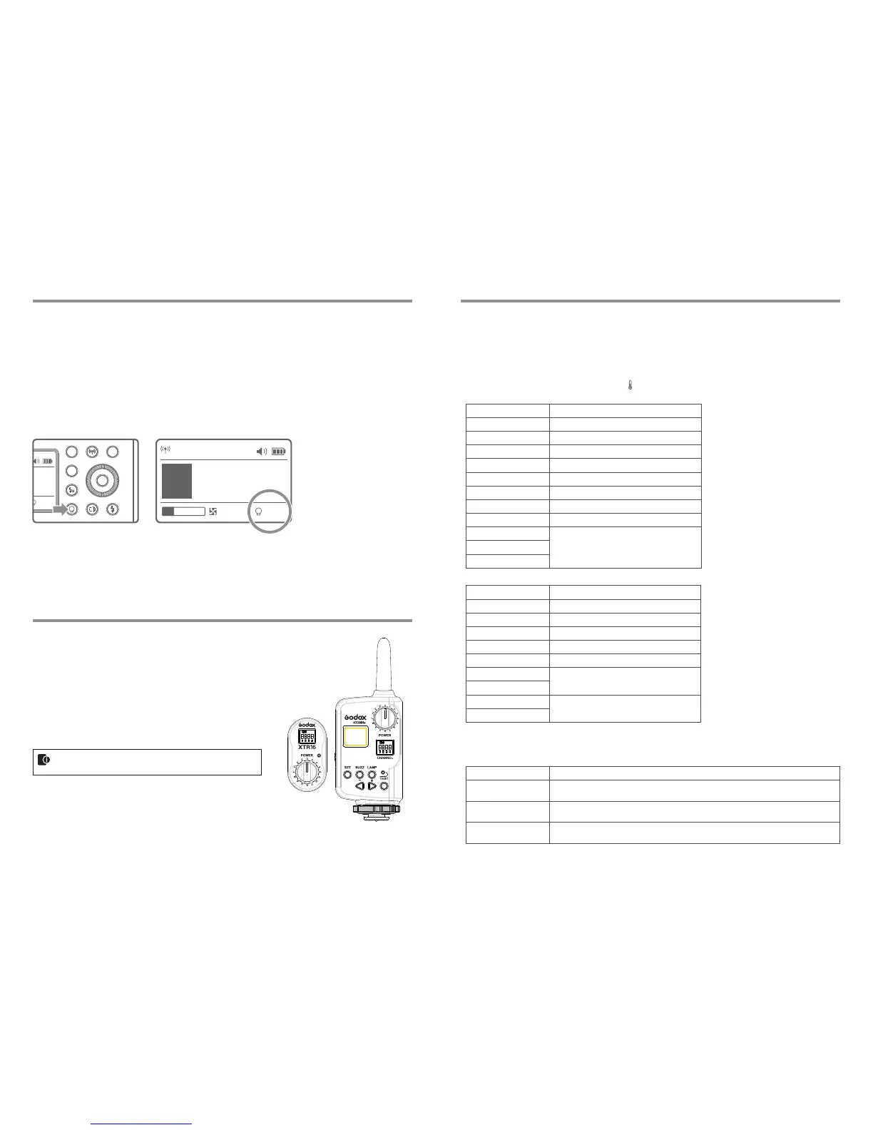 on the flash and insert the transmit end into the camera hot shoe. Settings