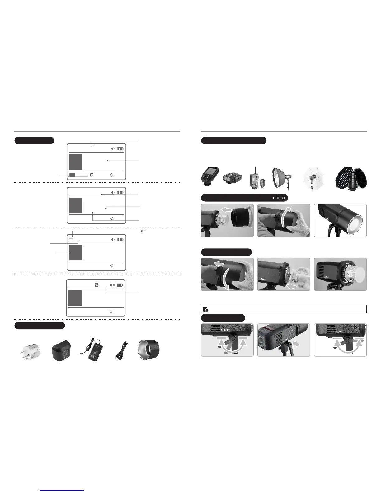 1. Flash tube 2. Lithium battery pack 3.Battery charger 4. Power cord 5. Lamp cover 6. Instruction manual