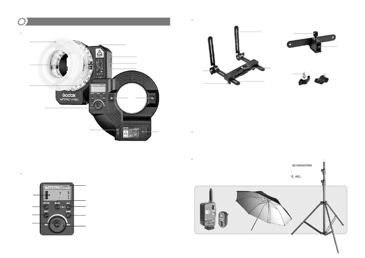 FT-16 Remote Control, Photographic Umbrella, Light Stand, etc.