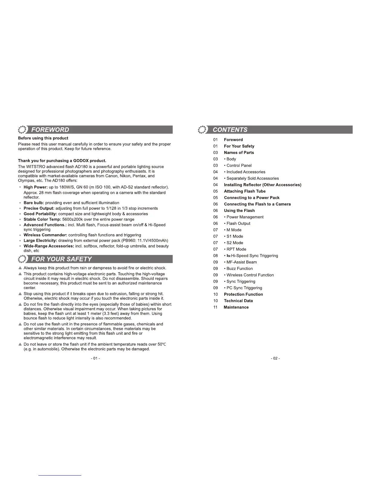Godox Witstro+ AD180 - Foreword; Before Using This Product; For Your Safety; Safety Precautions