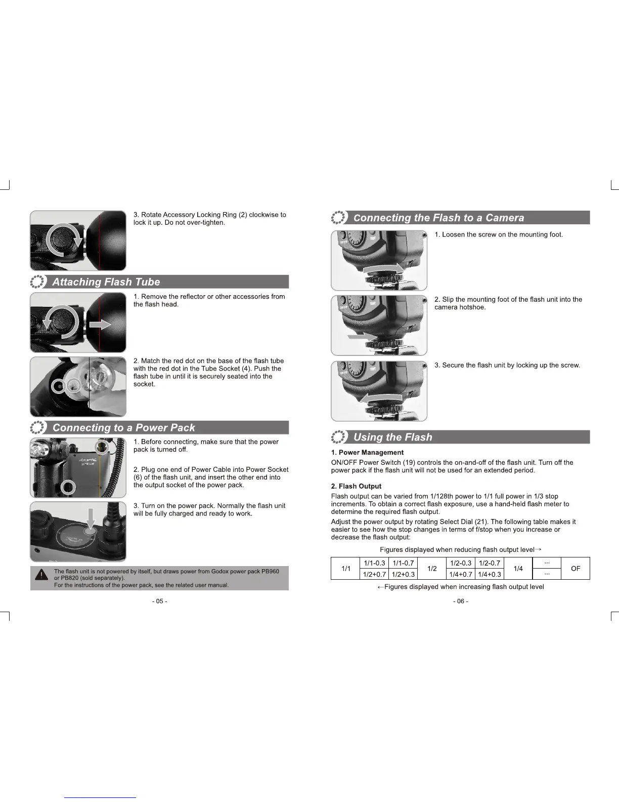 Godox Witstro+ AD180 - Attaching Flash Tube; Connecting to Power Pack; Connecting Flash to Camera; Using the Flash