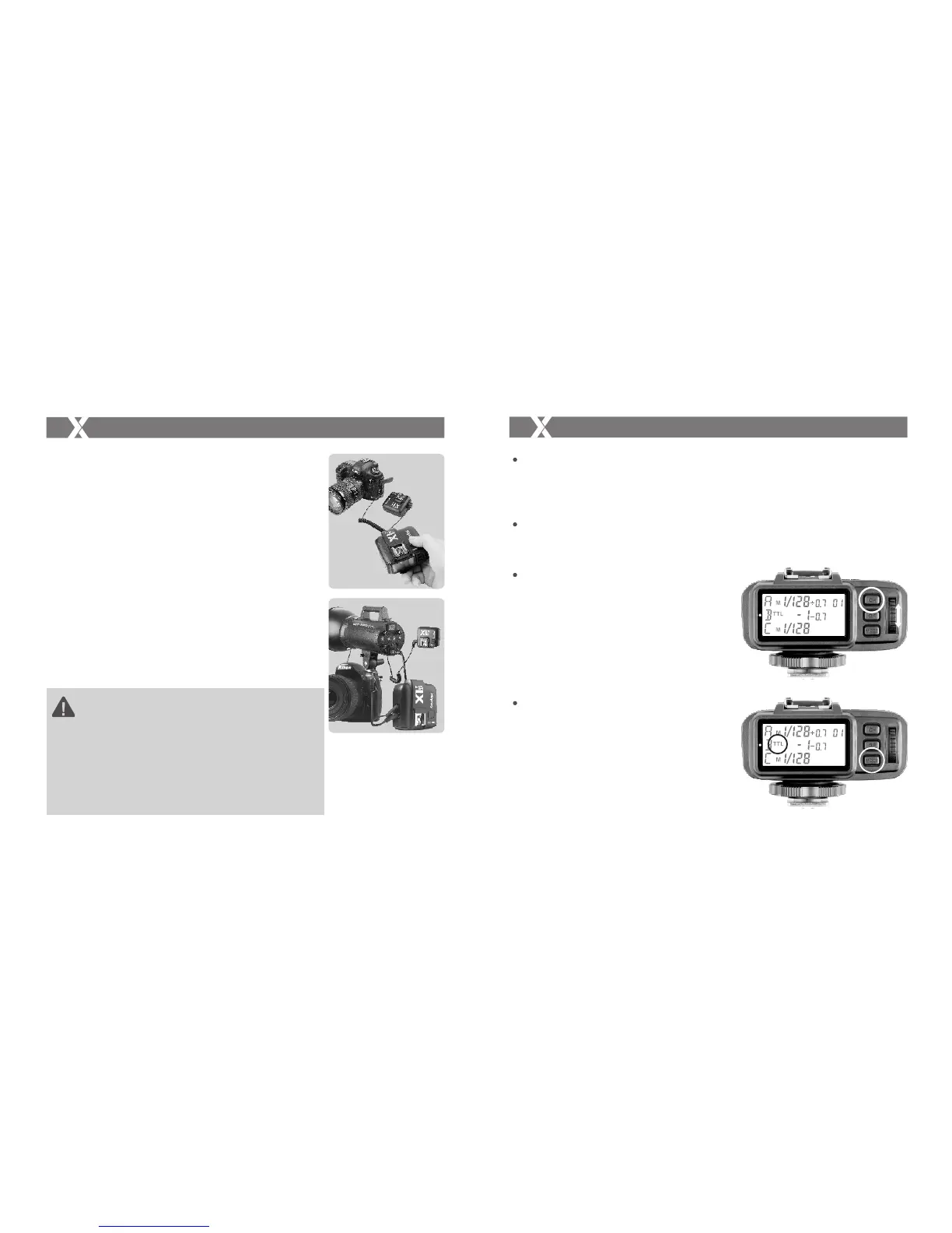 4.1 接收器端连接方式请参考“无线同步触发影室闪光灯”和“无