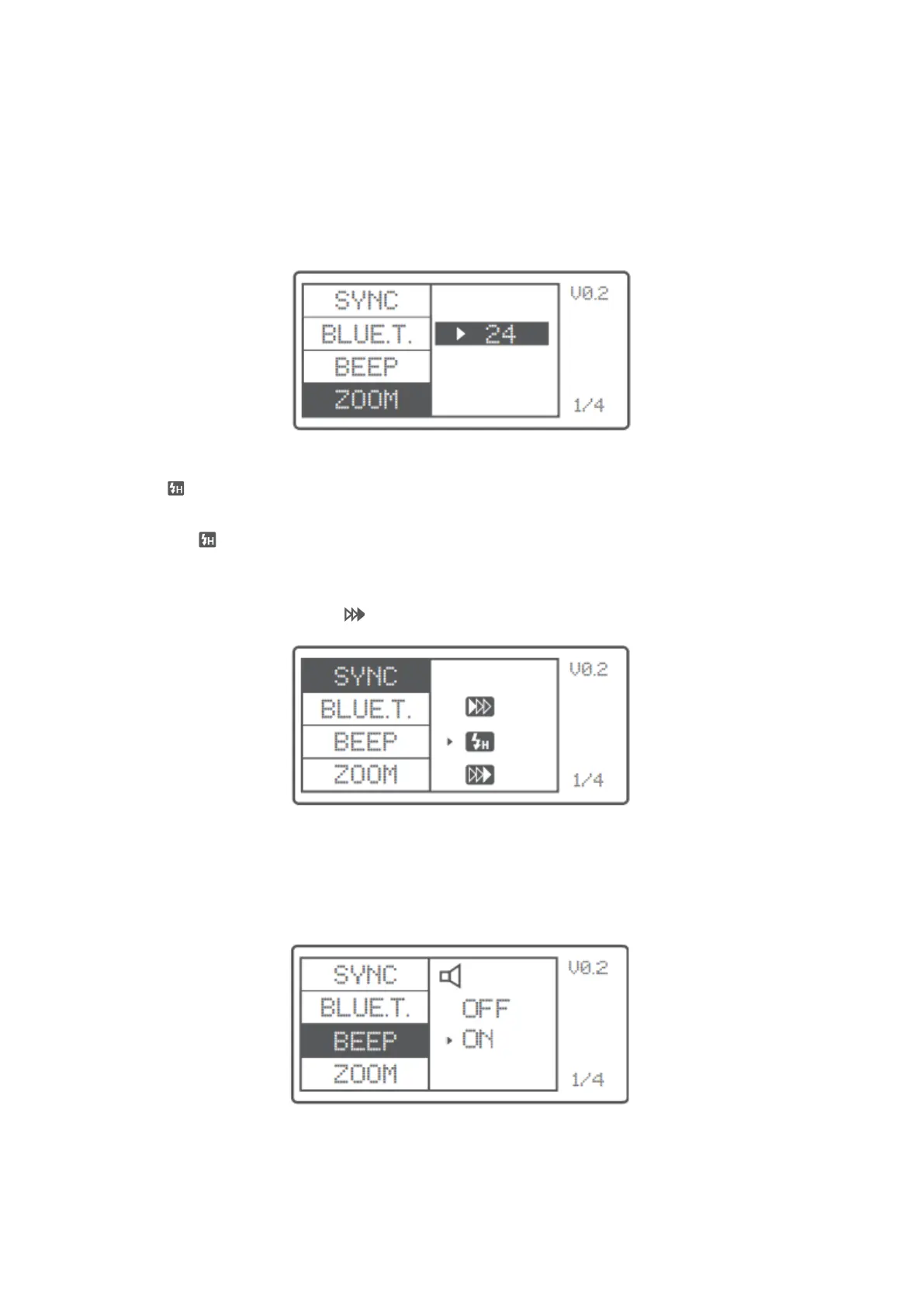 • High-Speed-Sync: Drücken Sie kurz die Taste <MENU>, um das Menü SYNC