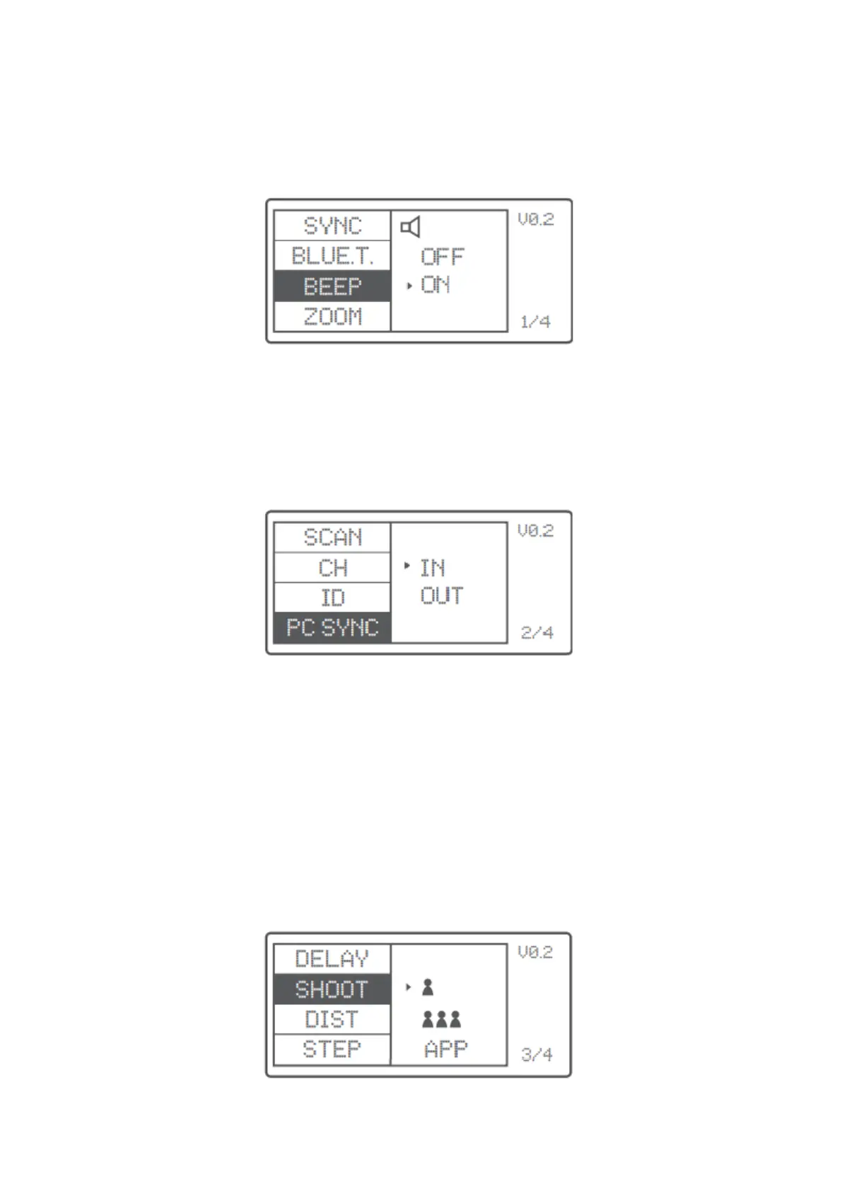 shoot or multi-shoots and press the <MENU> button again to back to the main menu.