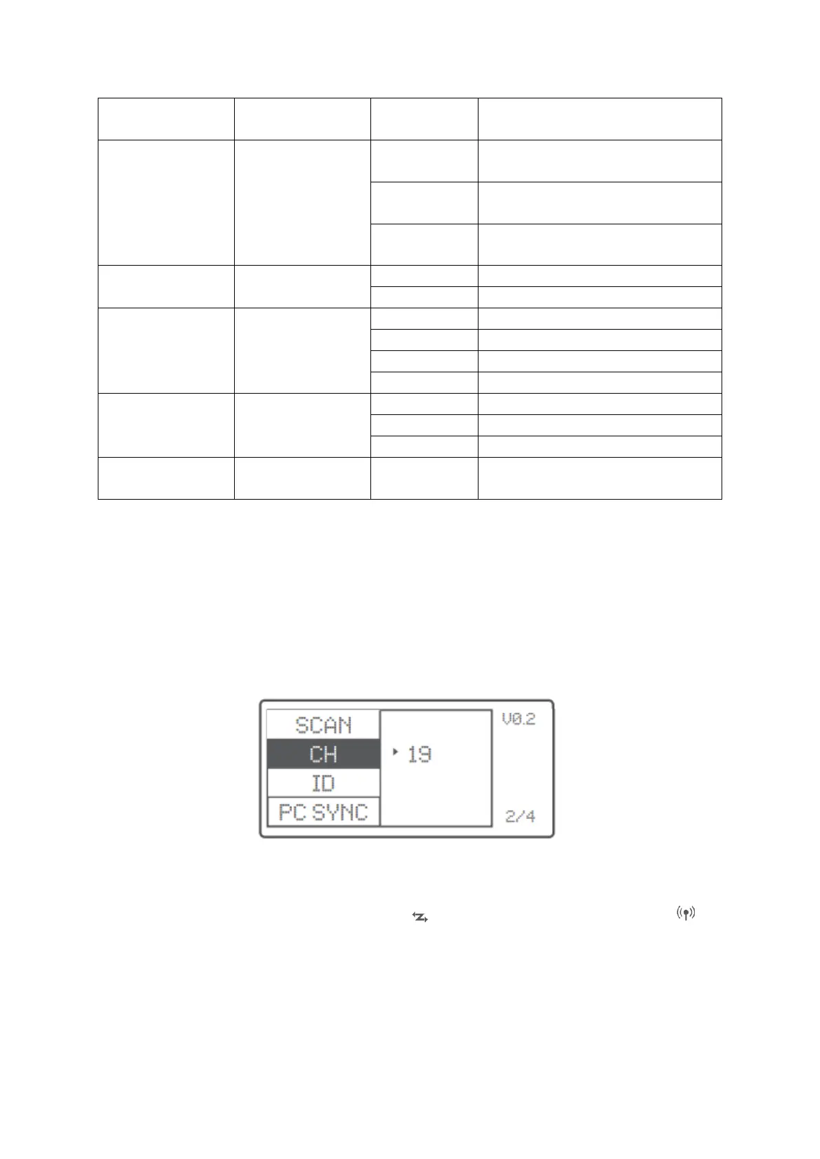 • Short press the <MENU> button to set channel, group, mode and parameters