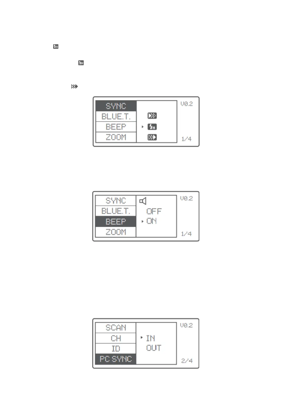 do nabídky SYNC. Vyberte ikonu vysokorychlostní synchronizace a na panelu LCD