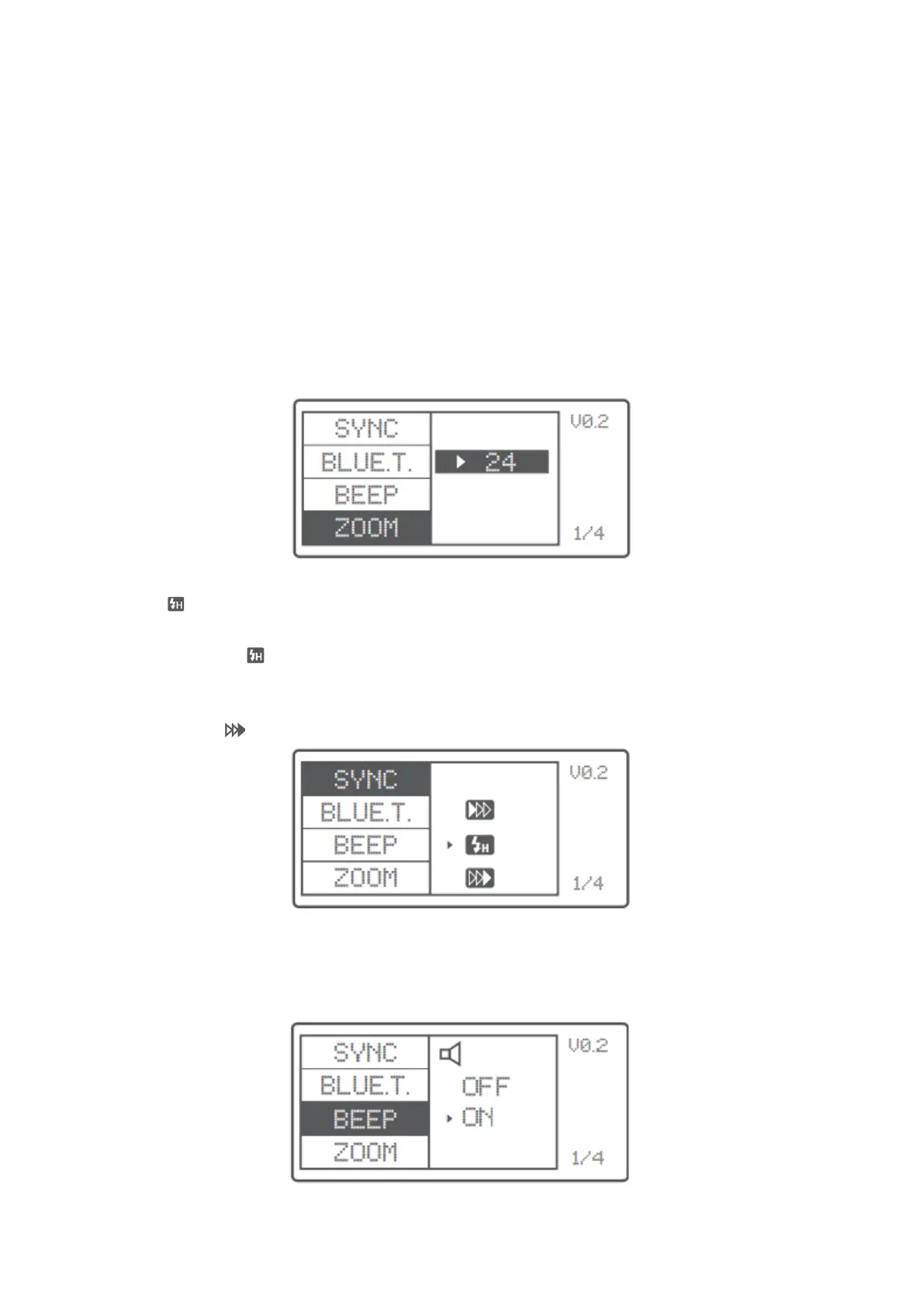 ponuky SYNC. Vyberte ikonu synchronizácie druhej záclony a na paneli LCD sa