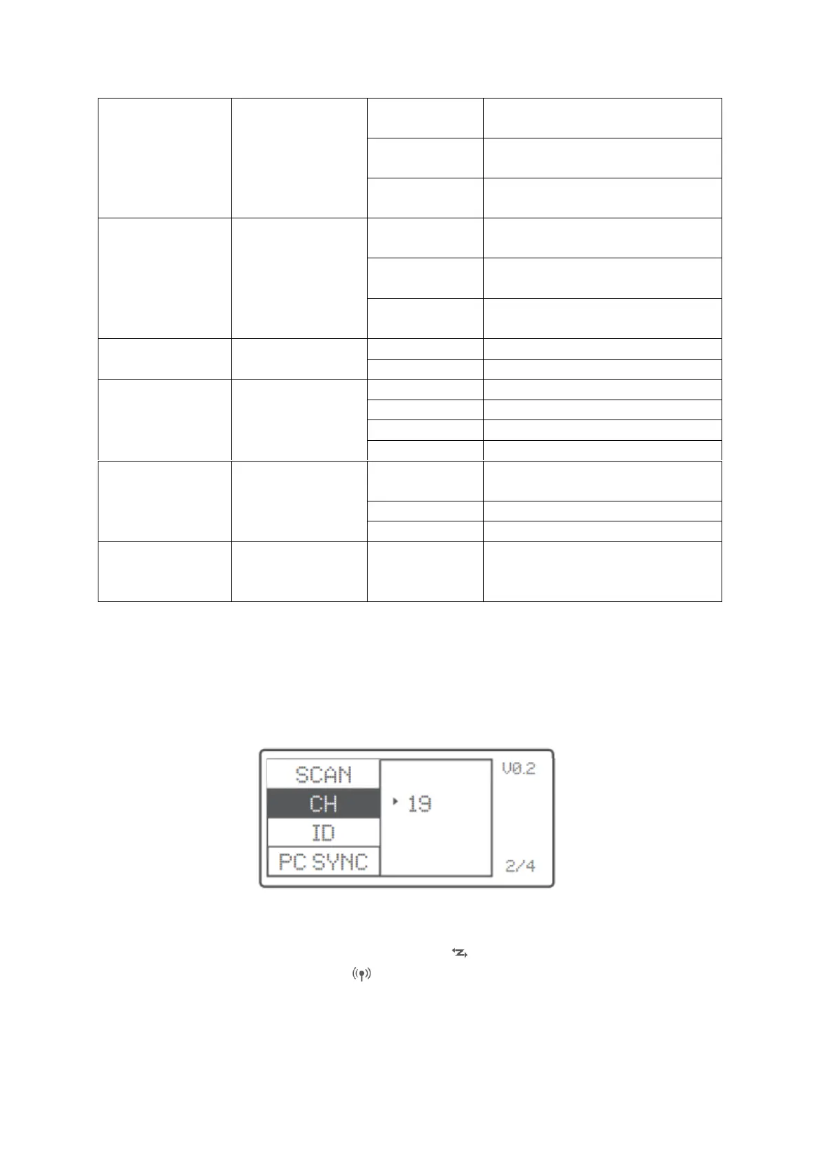 • Krátkym stlačením tlačidla <MENU> nastavte kanál, skupinu, režim a parametre