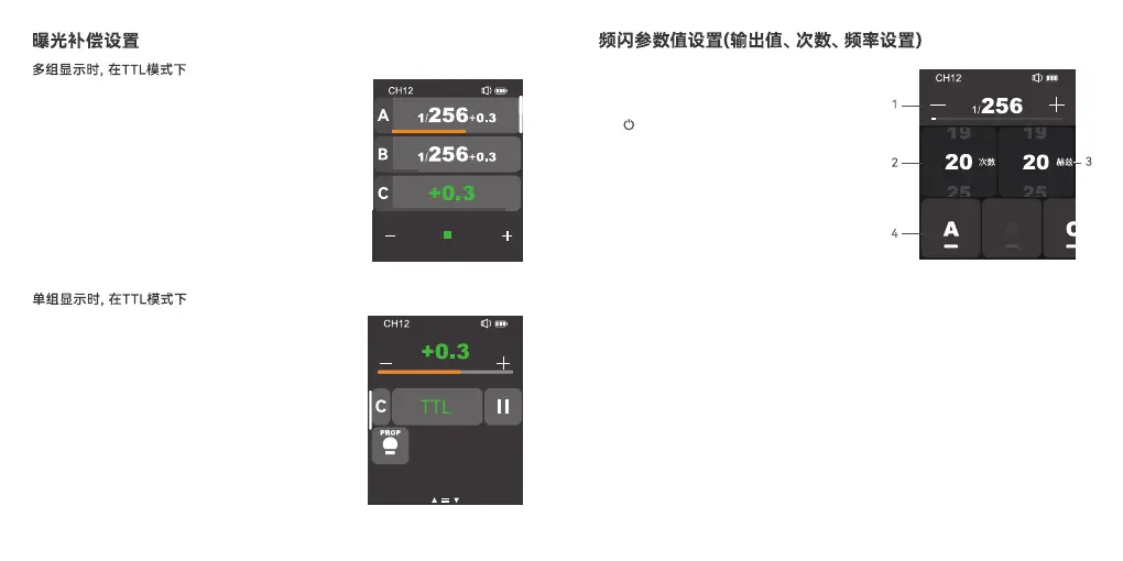 点击<+>,某组组别可增加曝光补偿值,点击