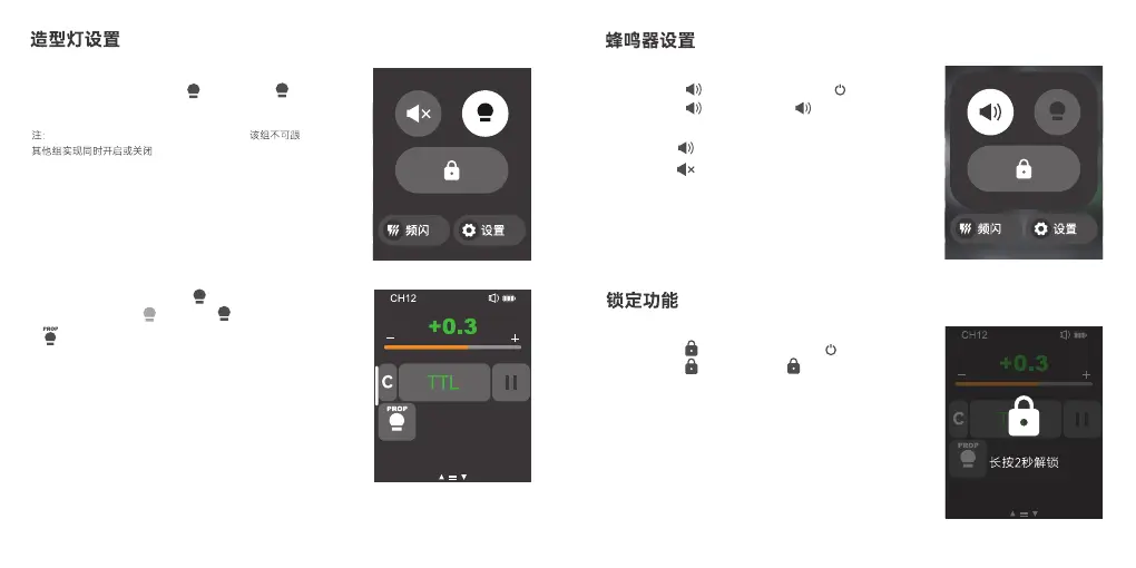 注:造型灯设置为PROP自动模式时造型灯亮度会随着闪光