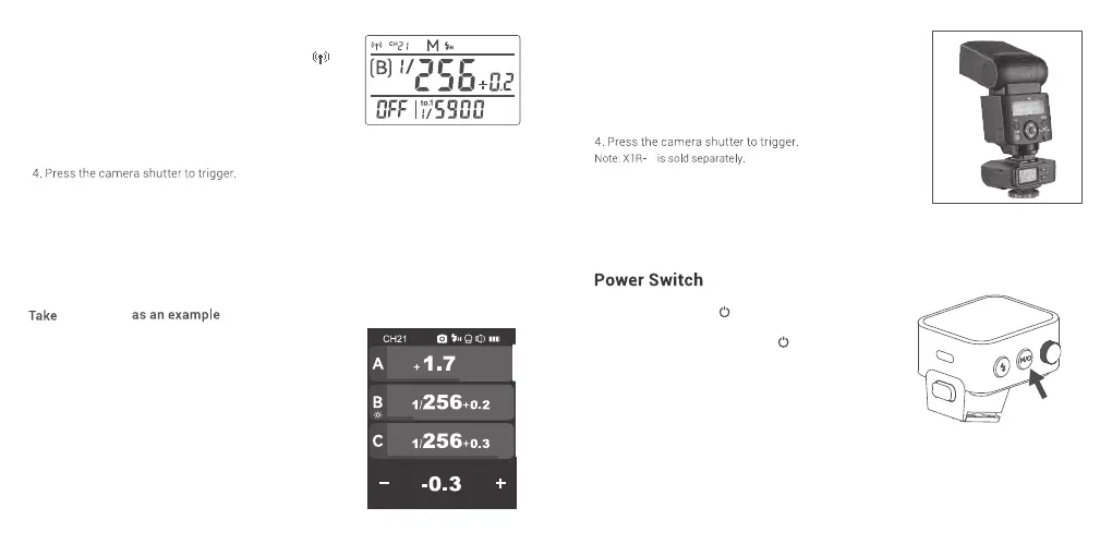 camera hot shoe. Then, power on the flash trigger