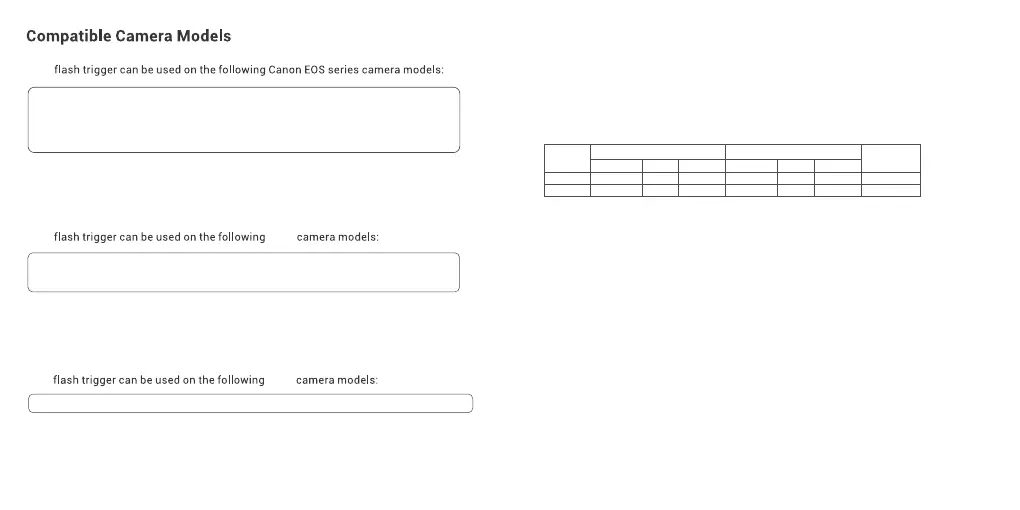 1. This table only lists the tested camera models not all Canon EOS series cameras. For the compatibility of