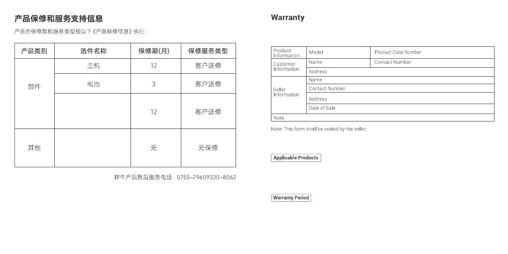 Maintenance Information. The warranty period is calculated from the day(purchase date) when the