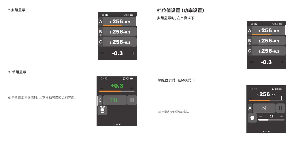 点 击 < + > ,某 组 组 别 可 增 加 功 率 档 位 ,点 击 < - > ,某
