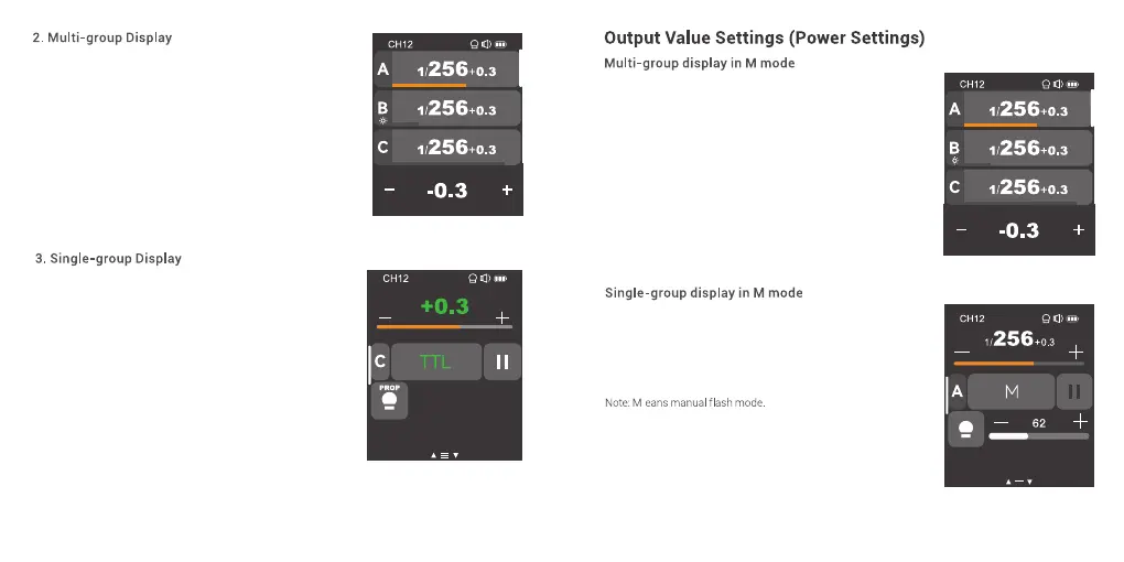 group to enter more settings such as power level, flash