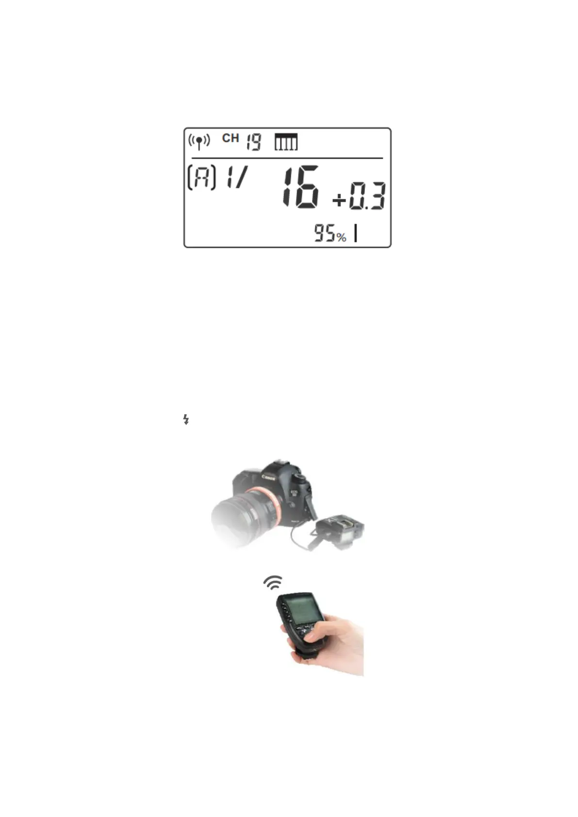 • Press the receiver’s <CH> button to set the same channel to the flash trigger and