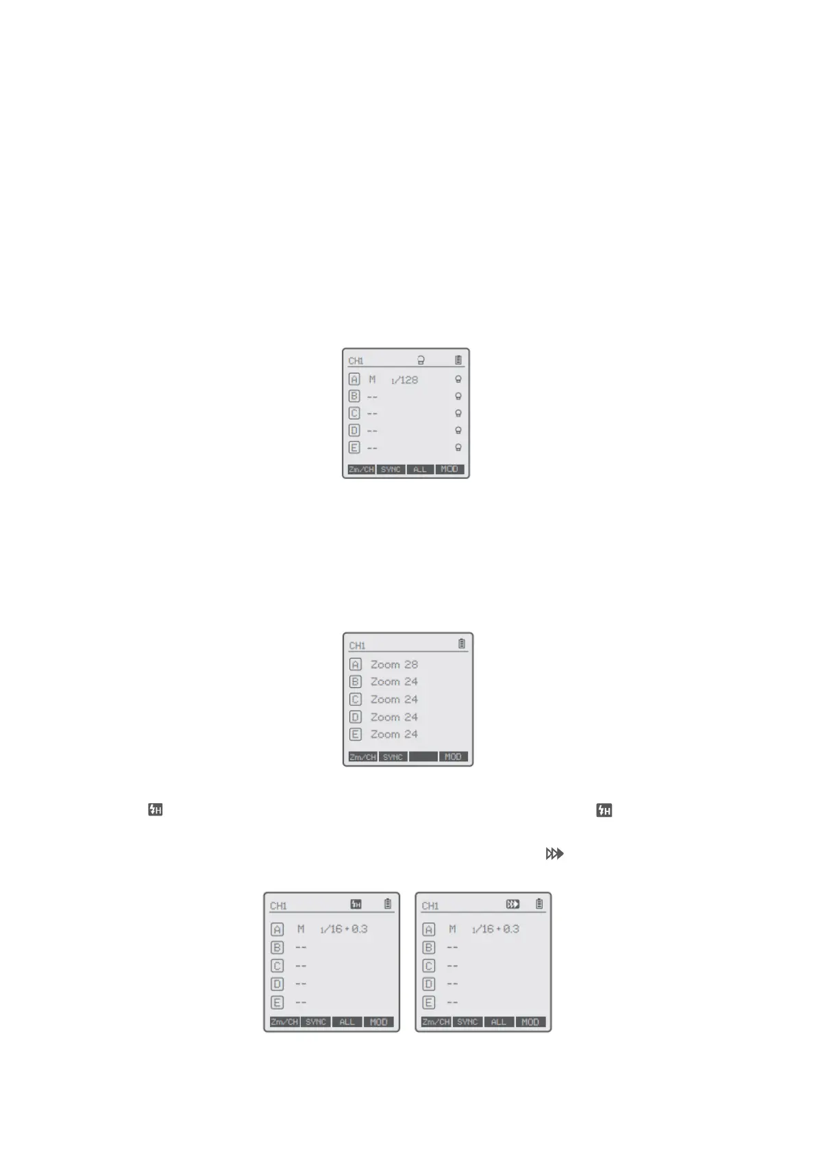 Hinweis: Der ZOOM des Blitzes sollte auf Auto (A) eingestellt sein, bevor Sie reagieren.