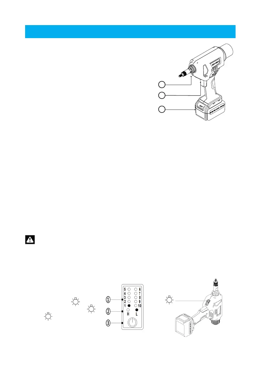 the pull force mode to low (L) when riveting small blind rivet nuts.