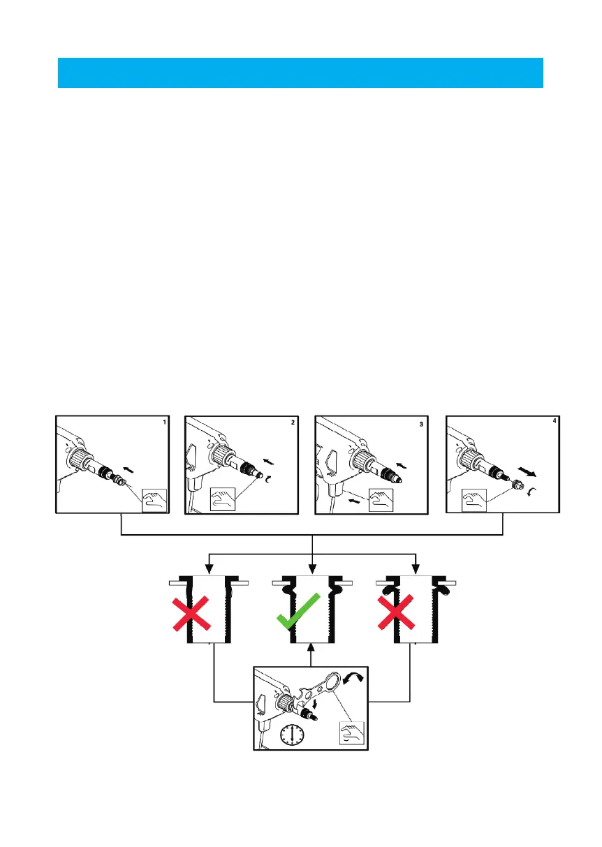 vertically and straight onto the mandrel! Press the blind rivet nut in the direction of