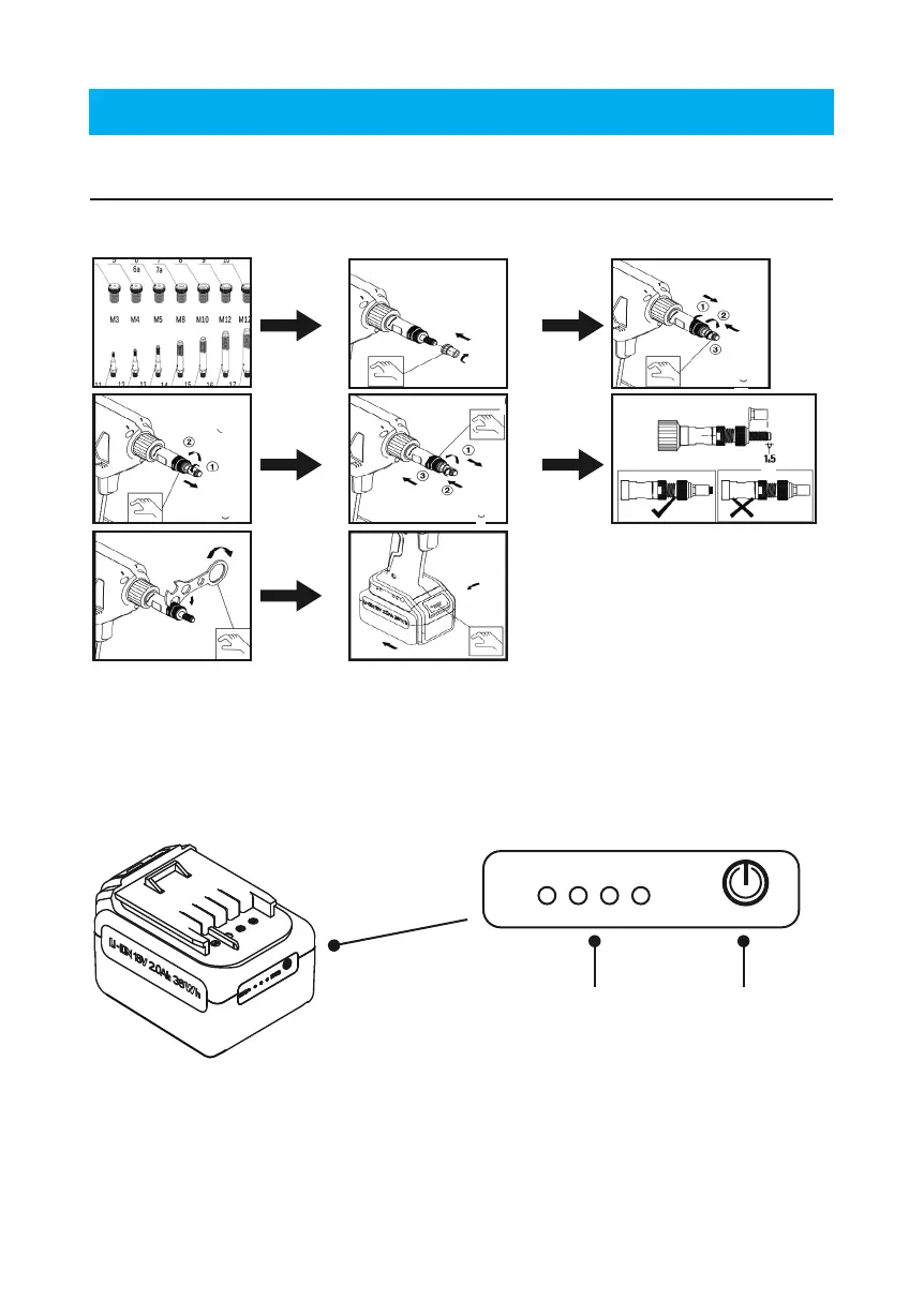 Make sure that the battery has been removed from the tool as shown in gure ①