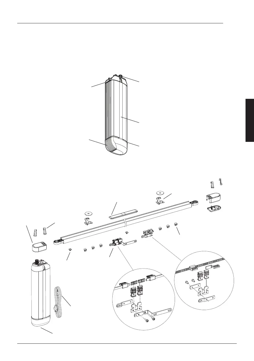Exploded view of a typical 6200 curtain rail system, for split stack,