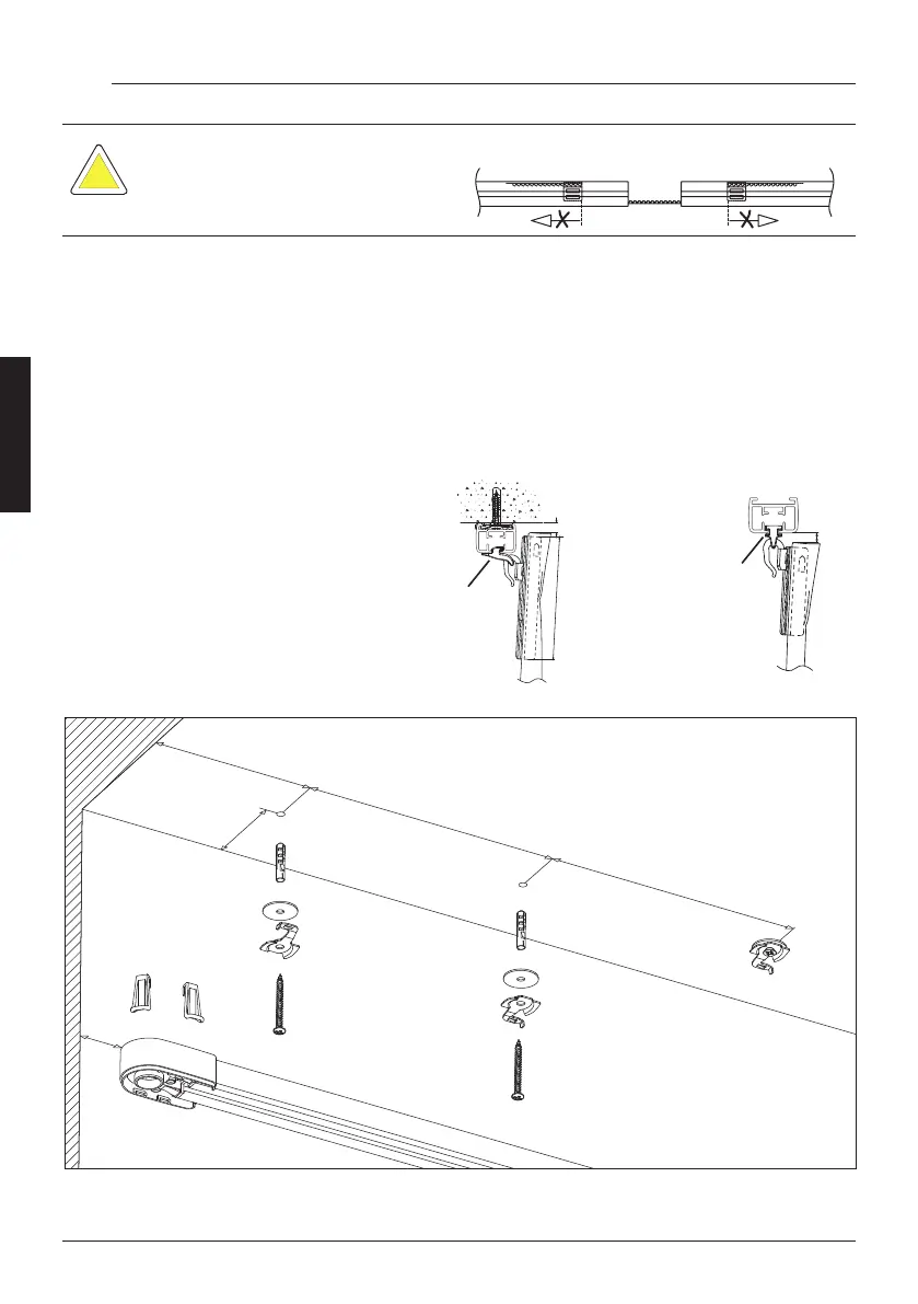 The pulley hooks should be inserted before mounting the rail.