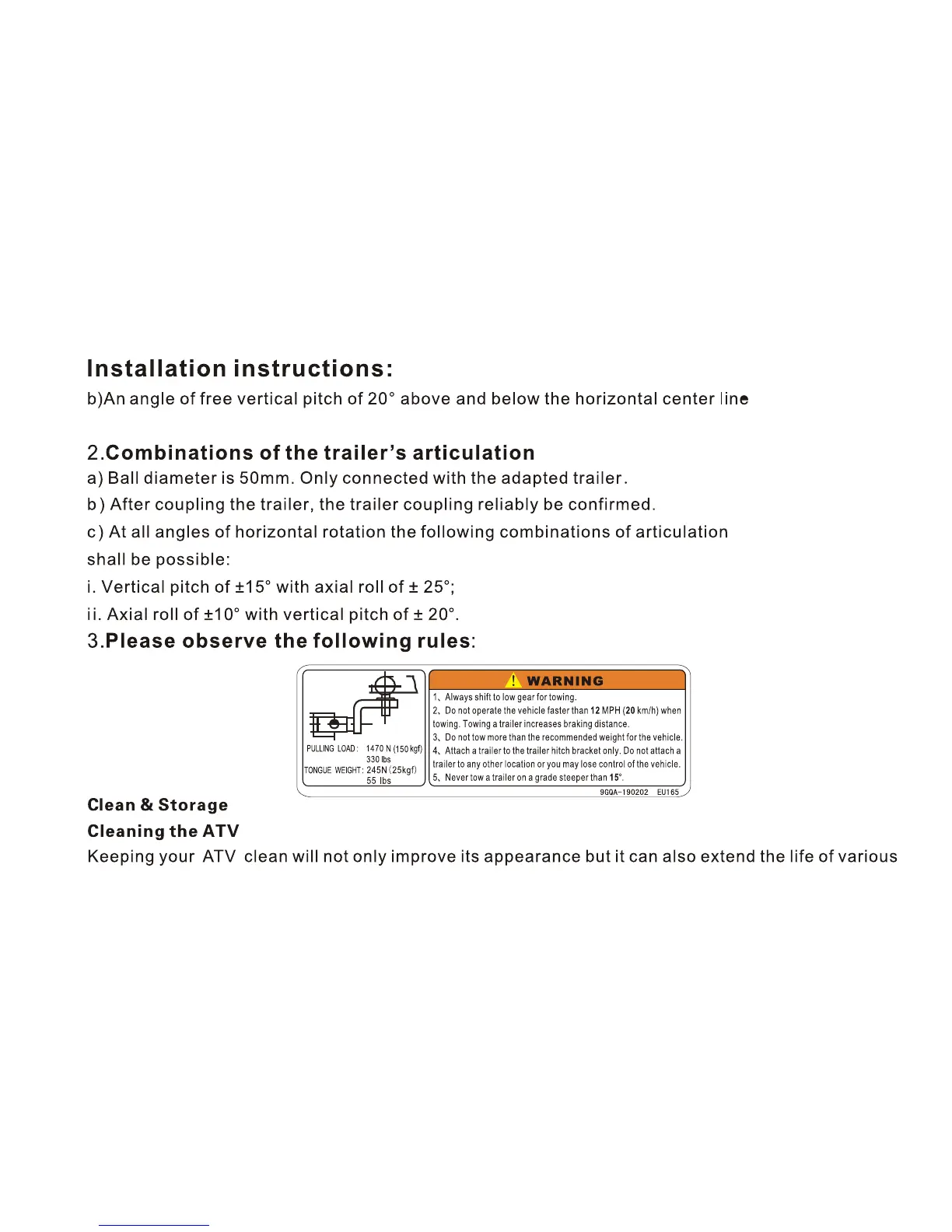 Goes Cobalt - Combinations of the Trailers Articulation; Clean & Storage; Cleaning the ATV