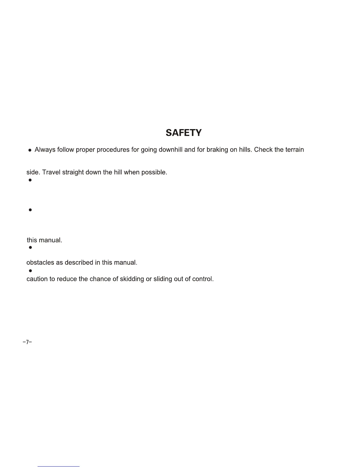 manual. Avoid crossing the side of steep hill when possible.
