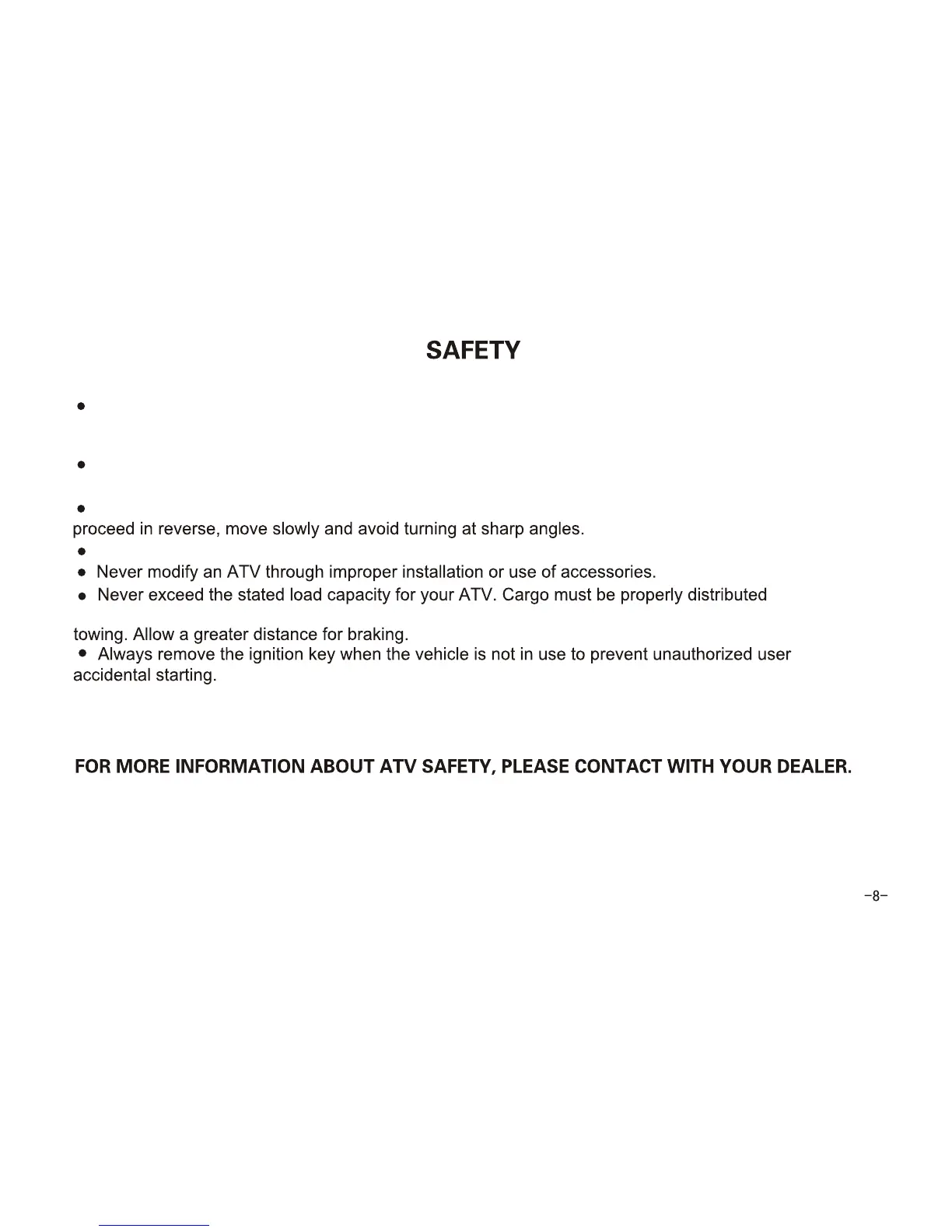 Always check for obstacles or people behind the ATV before operating in reverse. When it is safe to