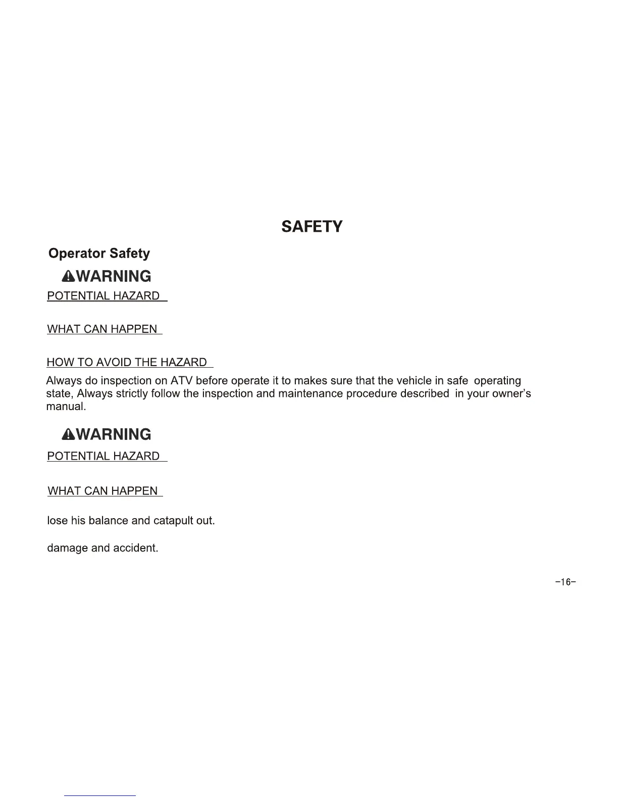 Opeating this ATV/QUAD without proper inspection and maintenance.