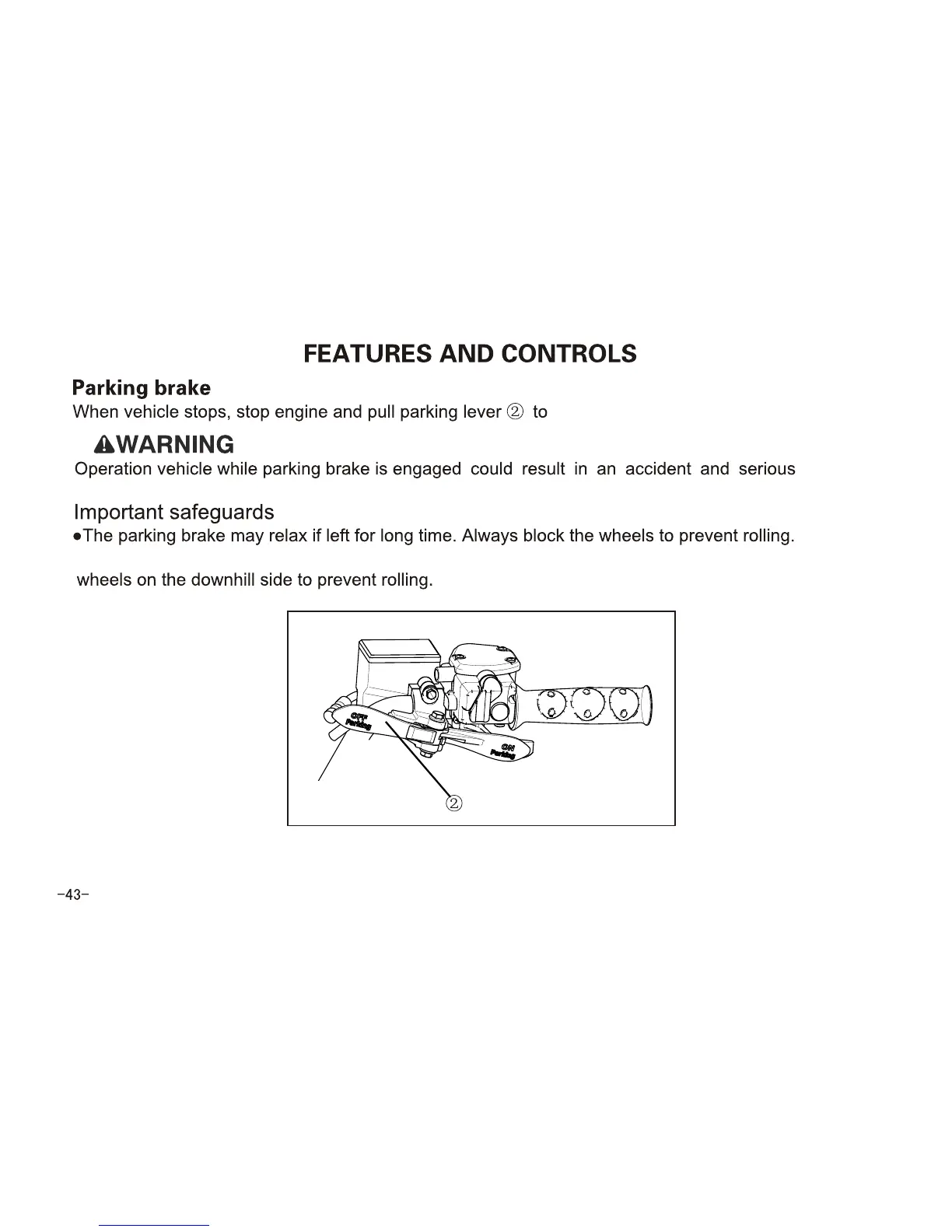 Never depend on parking brake alone if the vehicle is parking on a hill. Always block the